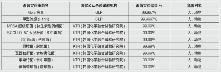 該技術(shù)源自美國(guó)航天局NASA空間消毒技術(shù),對(duì)各類常見病菌有極強(qiáng)的滅殺能力。