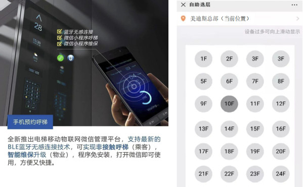 亮點(diǎn)2:零接觸式電梯操縱手機(jī)呼梯/選層