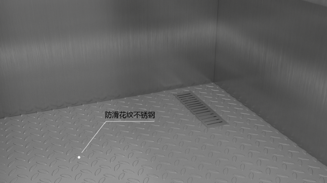 ①、由于轎廂內(nèi)部容易積水造成打滑,所以轎廂地板采用防滑花紋不銹鋼,有效防止因為地面積水打滑而造成的摔傷;