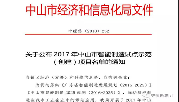 為貫徹落實《廣東省智能制造發展規劃(2015-2025)》《中山市智能制造2025規劃(2016-2025)》,推動智能制造在我市工業企業中的示范應用,市經信局開展了2017年中山市智能制造示范項...