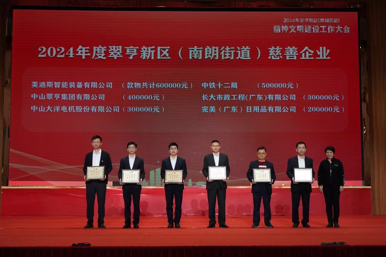 美迪斯獲頒廣東中山翠亨新區(qū)2024年度慈善企業(yè)