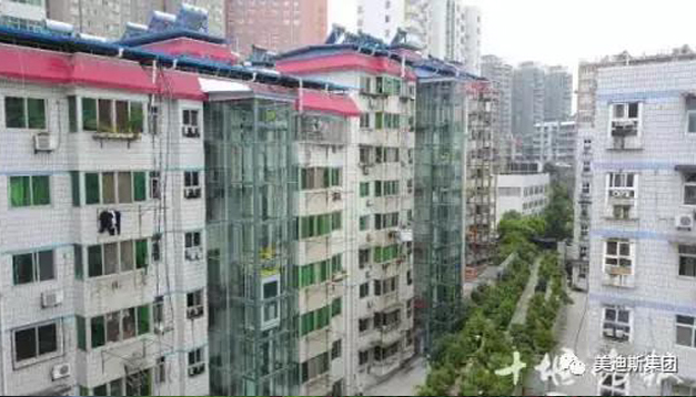 Nanhui Garden Community 20 units elevators adding project adopts energy-efficient PMS passenger elevator, rated loading capacity is 800kg, speed is 1m/s, 7/5/5.The elevator uses center opening door, cabin size is 1350mm*1400mm*2600mm, car door uses hairline finished stainless steel and sill material is hard aluminum alloy.